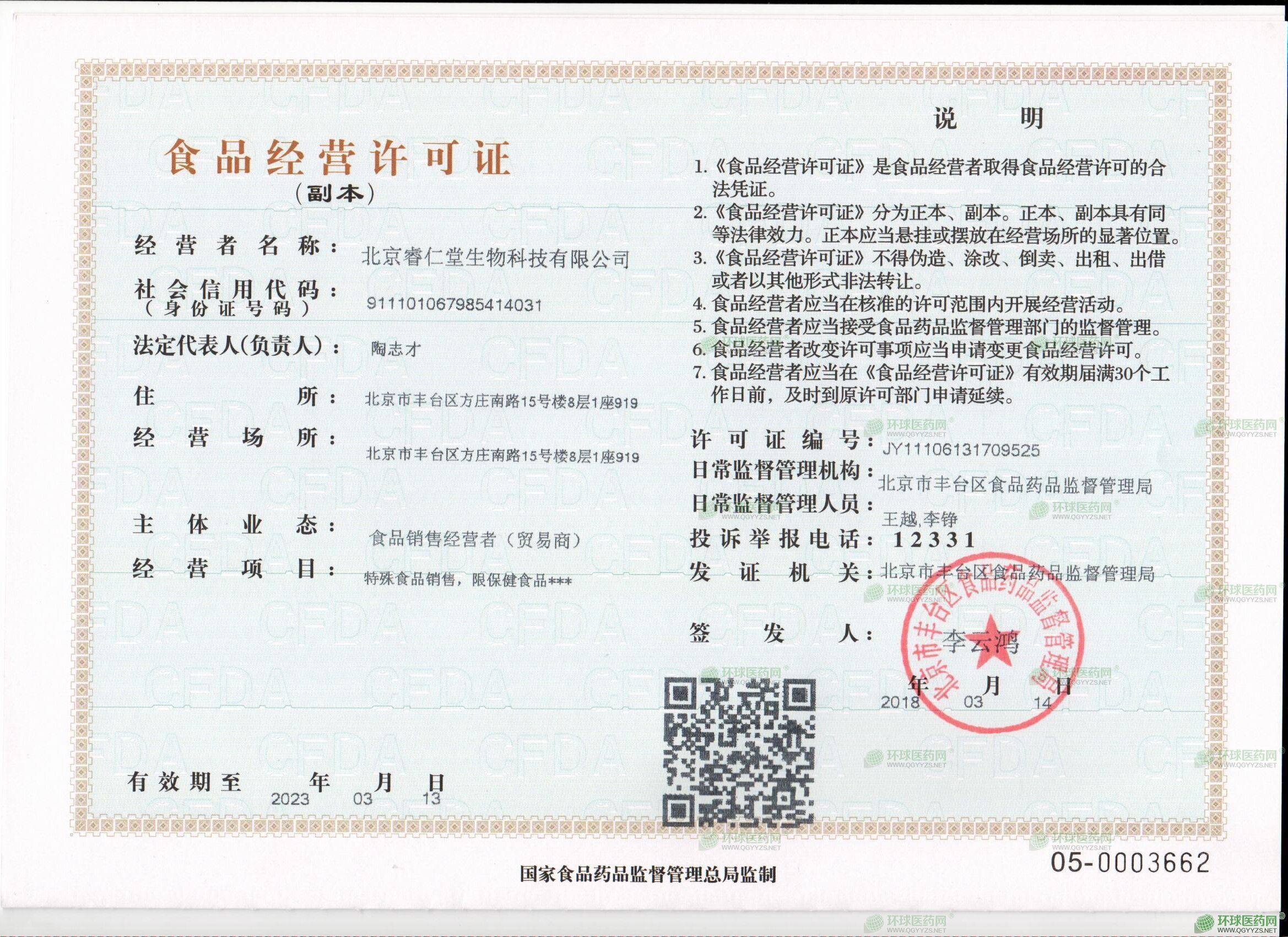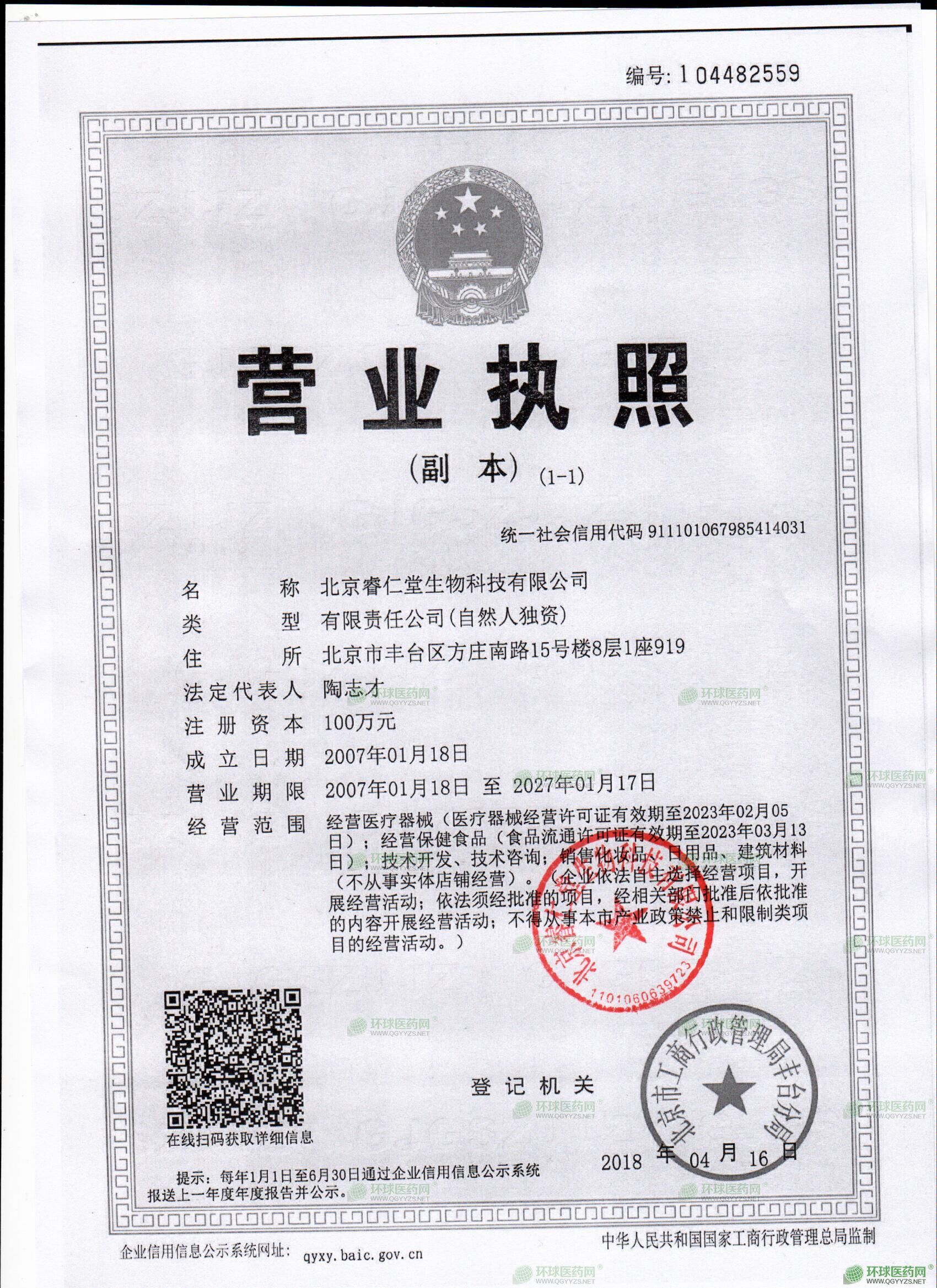 北京睿仁堂生物科技有限公司成立于2007年,自成立以來一直致力于醫(yī)藥推廣、醫(yī)療器械經營、保健食品研發(fā)銷售等業(yè)務。