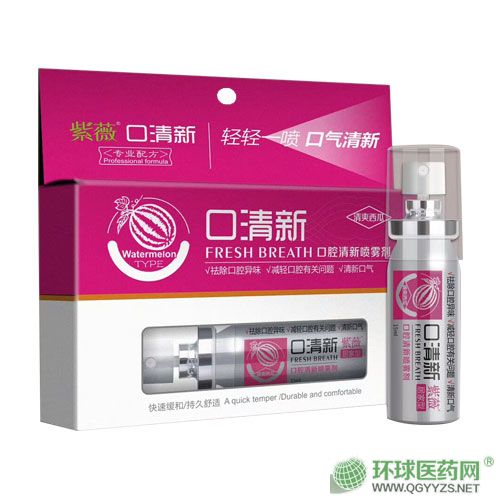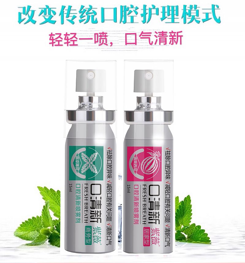 紫薇牌口清新薄荷清新口腔噴霧和紫薇牌口清新西瓜味清新口氣噴霧劑。