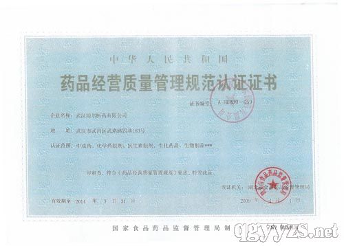 - 藥品經(jīng)營質(zhì)量管理規(guī)范認證證書