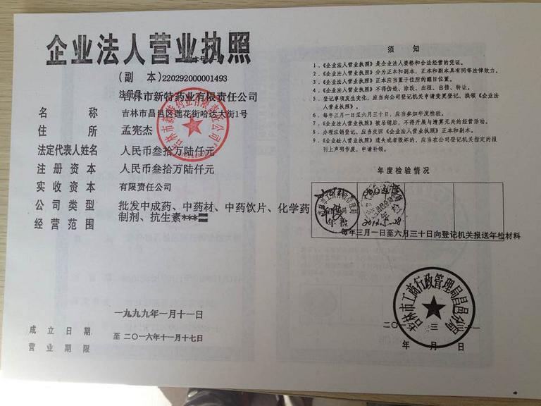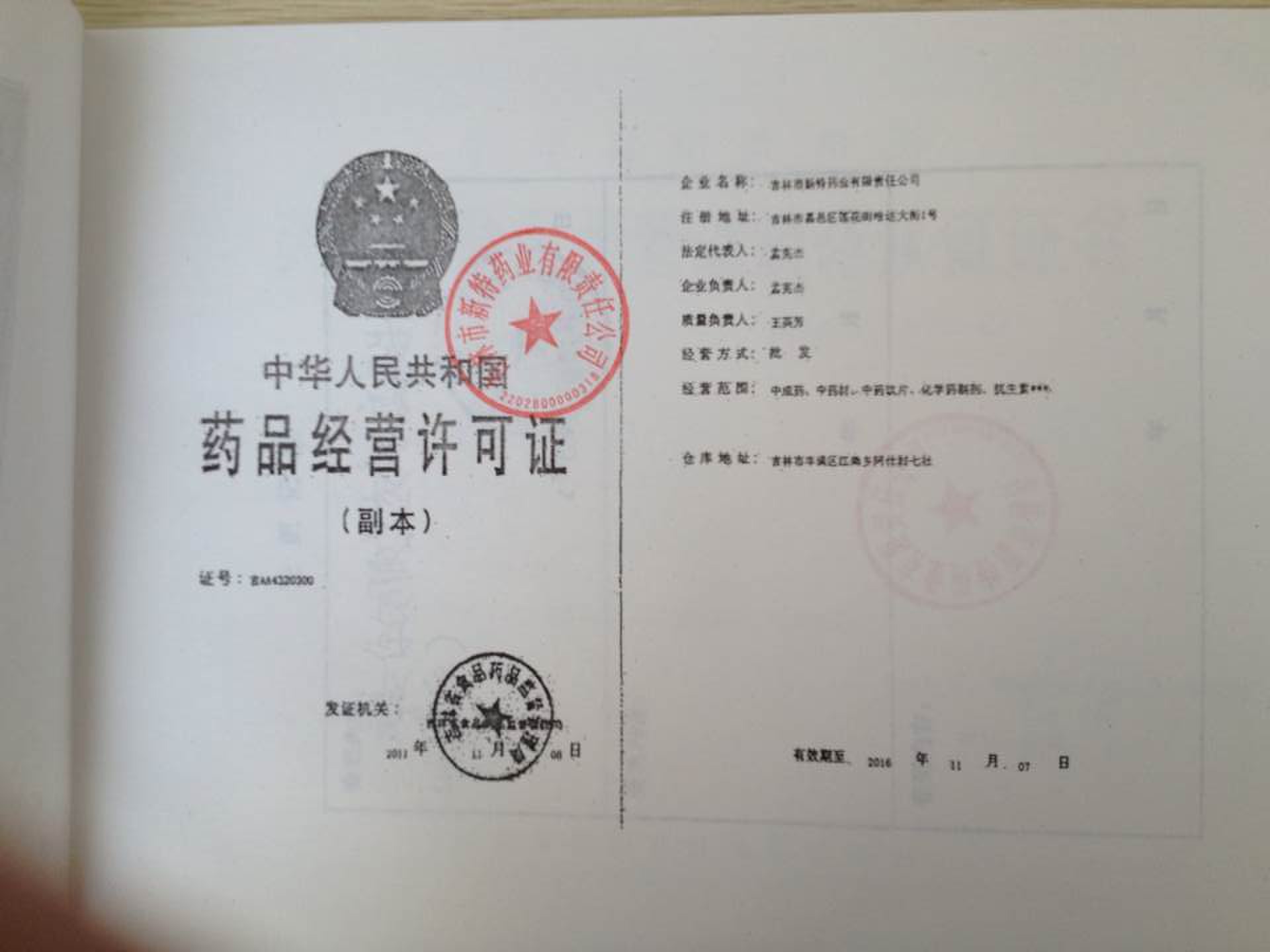 吉林市新特藥業(yè)有限責(zé)任公司創(chuàng)建于1956年,原稱吉林市醫(yī)藥公司,1998年企業(yè)改制設(shè)立吉林市新特藥業(yè)有限責(zé)任公司,是吉林地區(qū)國(guó)有參股的醫(yī)藥商業(yè)企業(yè),具有悠久的藥品經(jīng)銷歷程、優(yōu)良的傳統(tǒng)、良好的市場(chǎng)信譽(yù)。公司現(xiàn)有員工40余人,其中80%具有大專以上學(xué)歷及**專業(yè)技術(shù)職稱,具有完整的質(zhì)量**體系及產(chǎn)品檢驗(yàn)設(shè)施、擁有穩(wěn)定的銷售網(wǎng)絡(luò),生產(chǎn)企業(yè)平臺(tái)及可靠的售后服務(wù)保障。公司經(jīng)營(yíng)產(chǎn)品主要以吉林隆泰制藥集團(tuán)藥品和通化長(zhǎng)城藥業(yè)產(chǎn)品為主導(dǎo),同時(shí)經(jīng)營(yíng)全國(guó)各醫(yī)藥廠家2000余個(gè)品種。公司經(jīng)營(yíng)范圍:化學(xué)藥制劑、中成藥、中藥飲片、中藥材