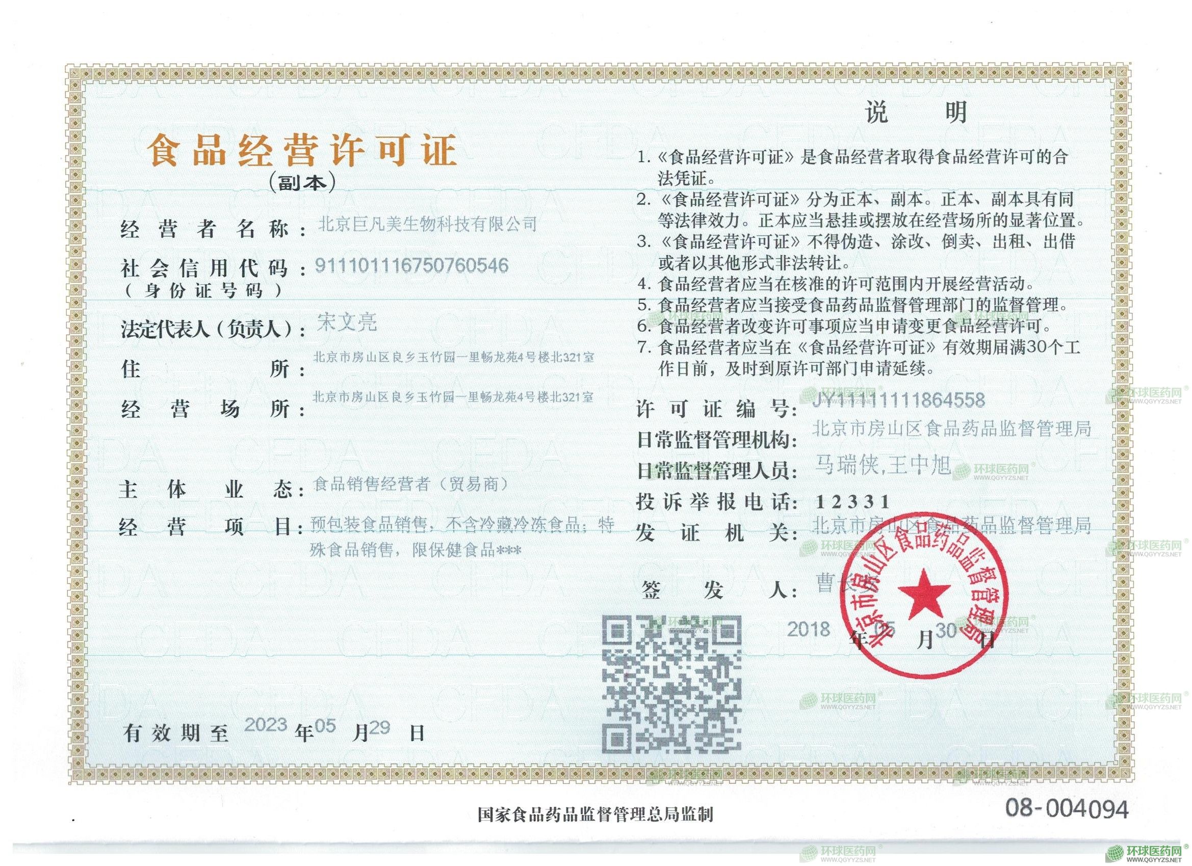 北京巨凡美生物科技有限公司成立于2008年5月,是一家新興活力的股份制企業(yè),總部位于祖國的心臟——北京,公司以藥品及營養(yǎng)保健產(chǎn)業(yè)為發(fā)展方向,自成立以來,不斷加大科技投入和市場開拓力度,以營養(yǎng)保健產(chǎn)業(yè)為專業(yè)發(fā)展方向,以“巨凡美”為品牌,致力于產(chǎn)品的開發(fā)和銷售。新產(chǎn)品開發(fā)前景廣闊。同時公司還與國際兒童智力營養(yǎng)學(xué)會聯(lián)手,共同致力于保健食品的開發(fā),不斷推出高新產(chǎn)品,在蓬勃發(fā)展的保健食品行業(yè)中,獨樹一幟,遙遙。