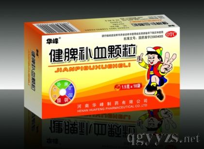 健脾補(bǔ)血顆粒處方源自1078年《太平惠民和劑局方》中的補(bǔ)氣健脾的方劑四君子湯加味而成。全方8味中藥:黨參、茯苓、皂礬、神曲茶、黑豆(炒)、白術(shù)、陳皮、甘草!叭A峰”健脾補(bǔ)血顆粒補(bǔ)血、益氣、健脾和胃、消積。用于脾虛血少所致的面黃肌瘦,食少體倦以及營(yíng)養(yǎng)性、缺鐵性貧血見上述癥候。