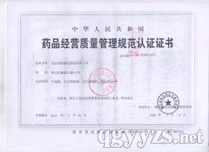 - 藥品經(jīng)營(yíng)質(zhì)量管理規(guī)范認(rèn)證證書