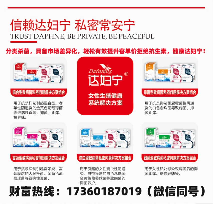 達(dá)婦寧私密精準(zhǔn)洗護(hù)系列產(chǎn)品,拒絕抗生素,健康達(dá)婦寧!