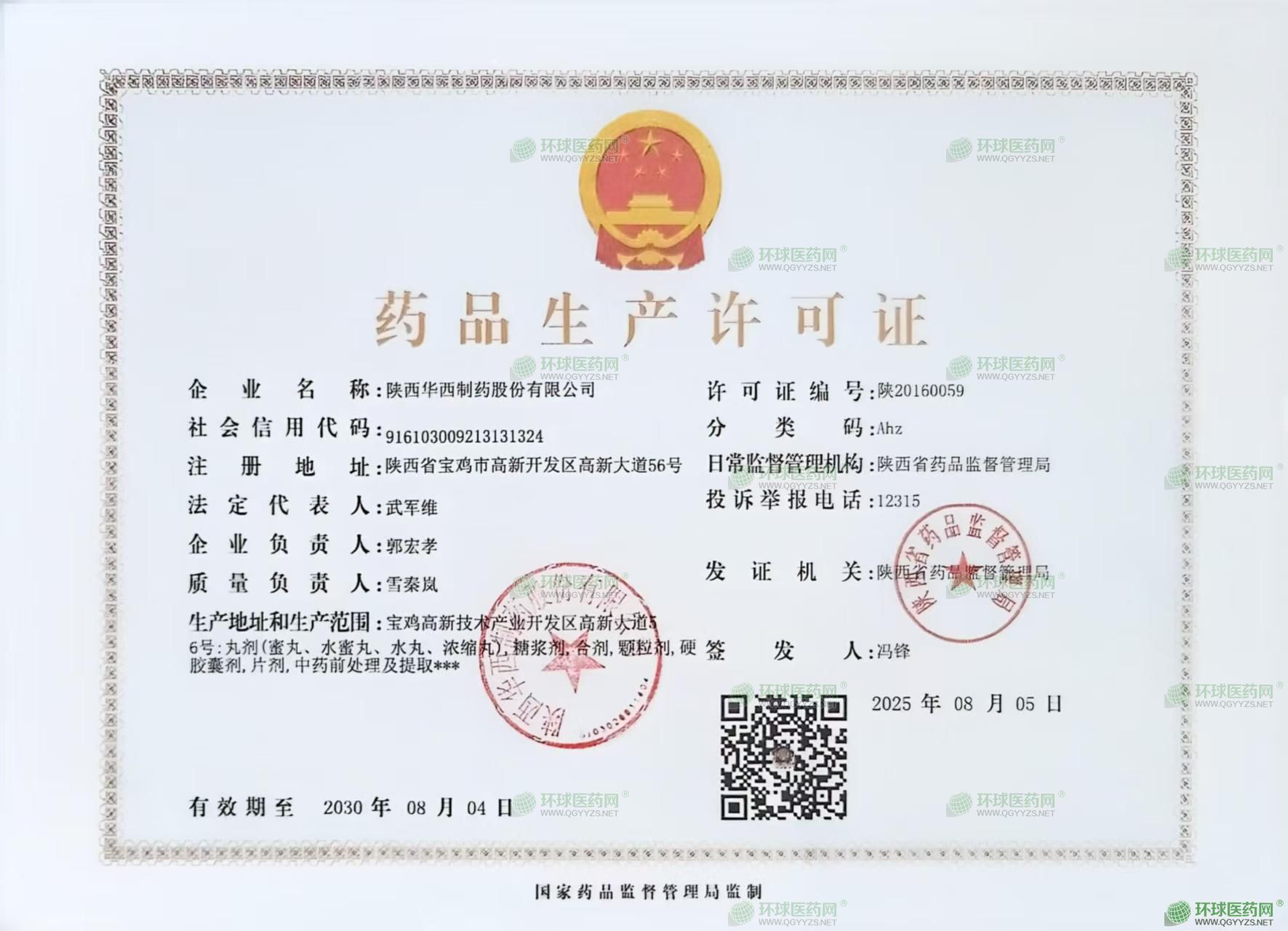 發(fā)證機(jī)關(guān): 陜西省藥品監(jiān)督管理局
