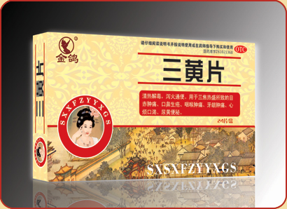 - 三黃片 批準(zhǔn)文號(hào): 國(guó)藥準(zhǔn)字Z61021364規(guī) 格: 24片/板/盒