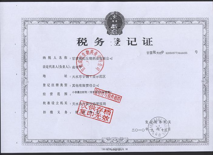 發(fā)證機關(guān): 甘肅省藥品監(jiān)督管理局