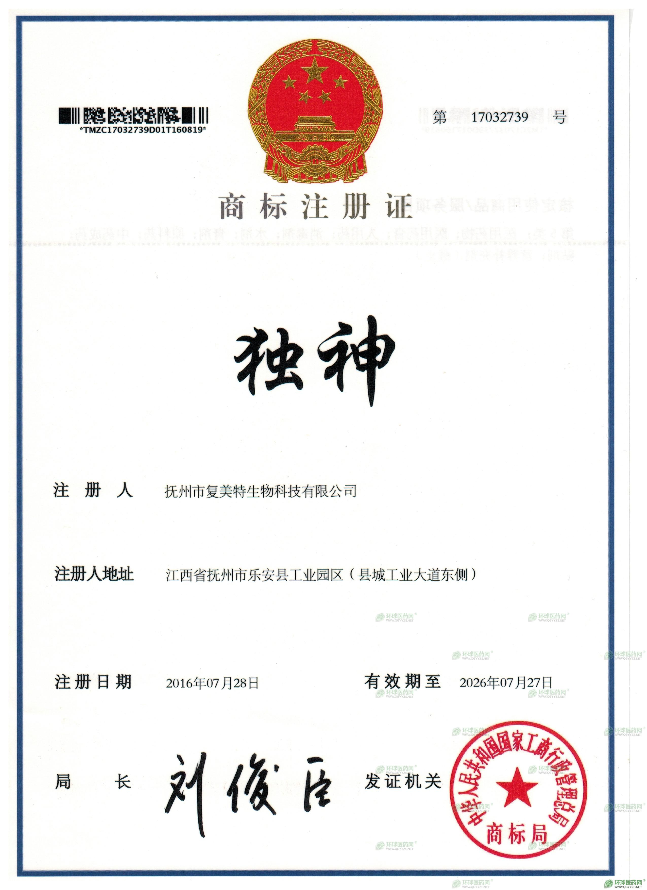 - 商標注冊證