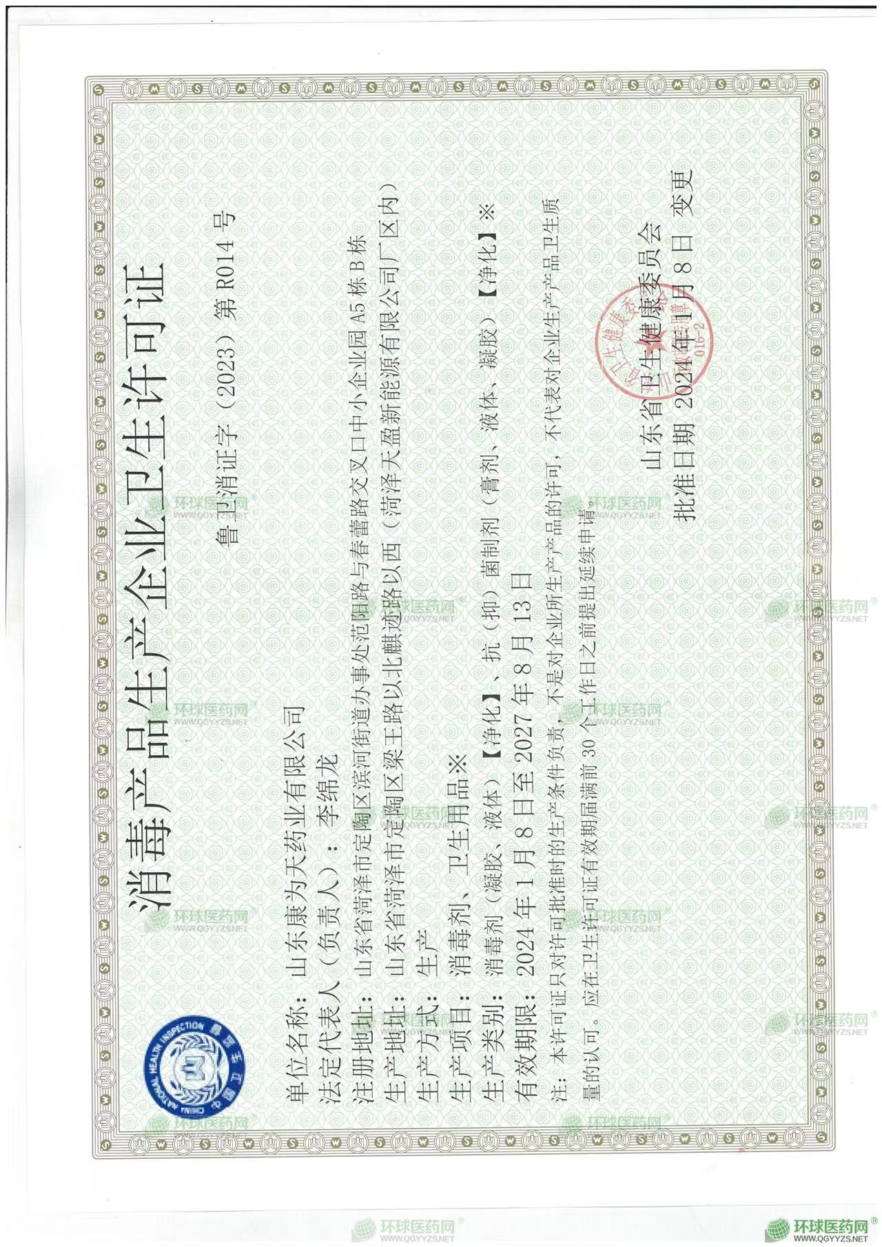 - 消毒產(chǎn)品生產(chǎn)許可證