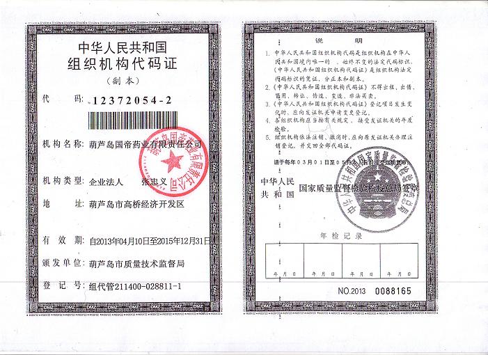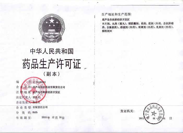 [企業(yè)法人]:葫蘆島國帝藥業(yè)有限責(zé)任公司