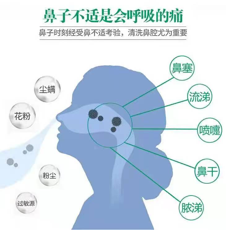 適用范圍:該產(chǎn)品用于急慢性鼻炎、過敏性鼻炎、鼻息肉、鼻竇炎等鼻腔疾病患者的鼻腔清洗,也用于鼻炎術后的鼻腔清洗。