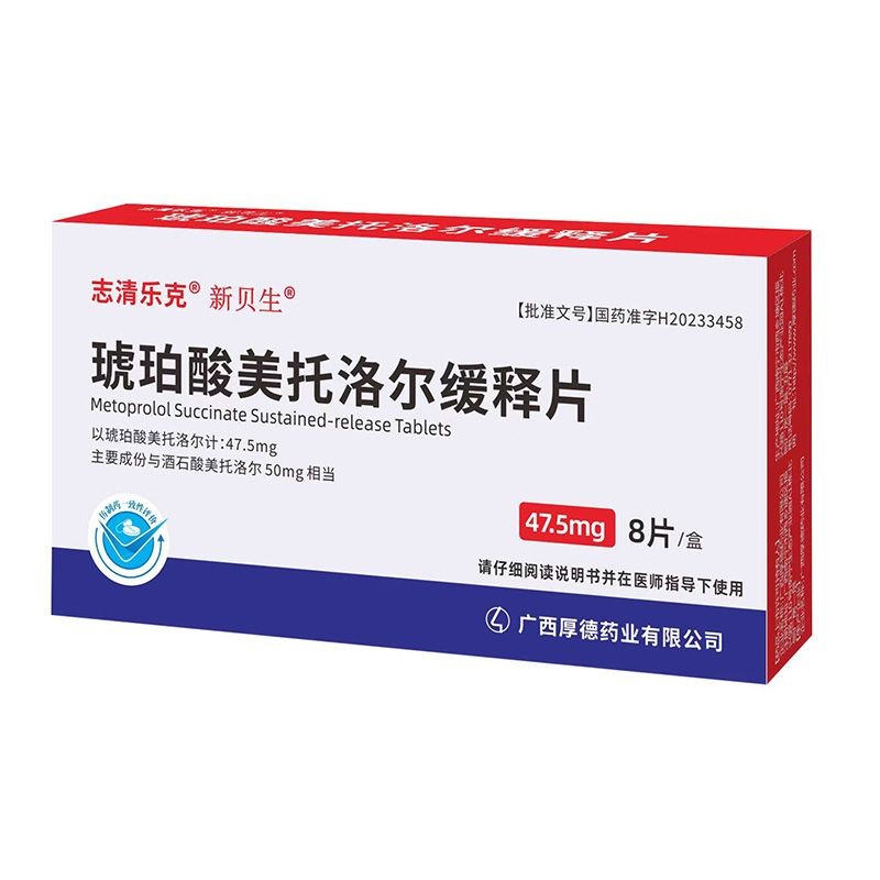 醫(yī)保乙類的處方藥,在治療高血壓、心絞痛以及伴有左心室收縮功能異常的癥狀穩(wěn)定的慢性心力衰竭方面表現(xiàn)出色。通過拮抗交感神經(jīng) β 腎上腺素能受體,起到降壓、減少心肌氧耗等作用,有效減輕患者癥狀。服用方便,一天一次,可掰開但不能咀嚼或壓碎,且攝入食物不影響其生物利用度。