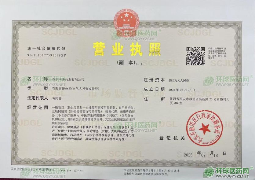 [企業(yè)法人]:西安同喜藥業(yè)有限公司