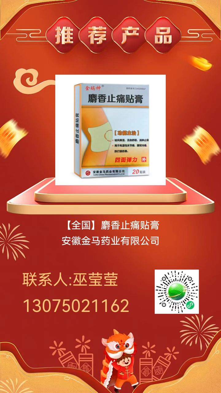 麝香止痛貼膏為安徽金馬藥業(yè)有限公司的控銷產品,正在環(huán)球醫(yī)藥網火爆招商中,歡迎前來聯(lián)系洽談。