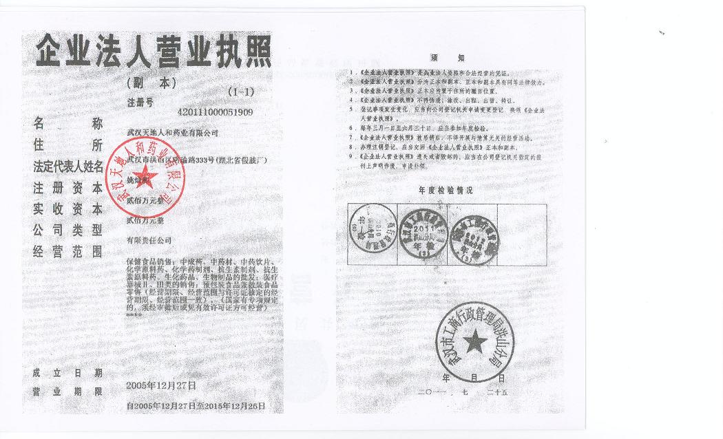 [企業(yè)法人]:武漢天地人和藥業(yè)有限公司