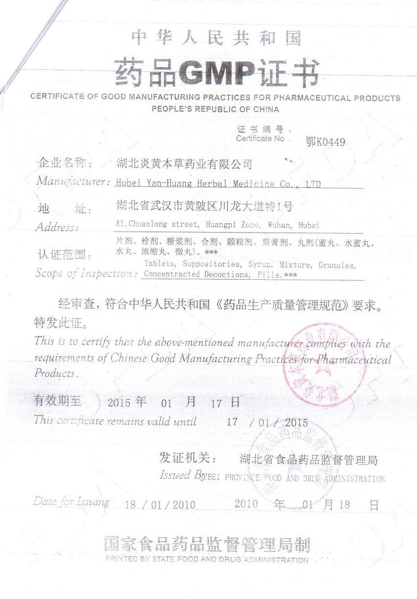 炎黃本草藥業(yè)秉承炎黃先祖“遍嘗百草、以醫(yī)民恙”之精神,“選好材,制好藥,為百姓”,始終將質(zhì)量放在位,品質(zhì)當(dāng)先,誠信為重,服務(wù)大眾。多年來公司一直與客戶務(wù)實(shí)合作,踏實(shí)經(jīng)營,穩(wěn)步發(fā)展,得到各級(jí)政府、社會(huì)人士和廣大民眾的廣泛贊譽(yù)。2006年,公司被評(píng)定為高新技術(shù)企業(yè);2009年,一次性**通過國家GMP認(rèn)證;2010年,公司獲得湖北省知名商標(biāo)稱號(hào)。