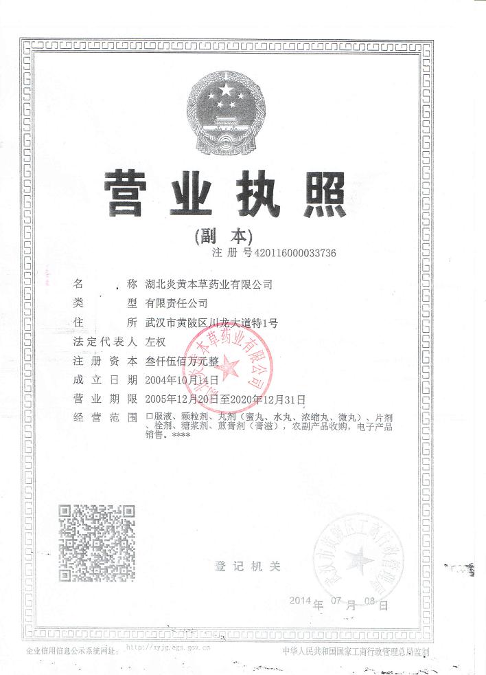 [企業(yè)法人]:湖北炎黃本草藥業(yè)有限公司