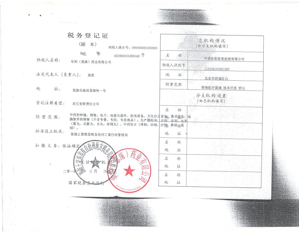 注冊地址: 湖北省恩施市施恩堂路特1號