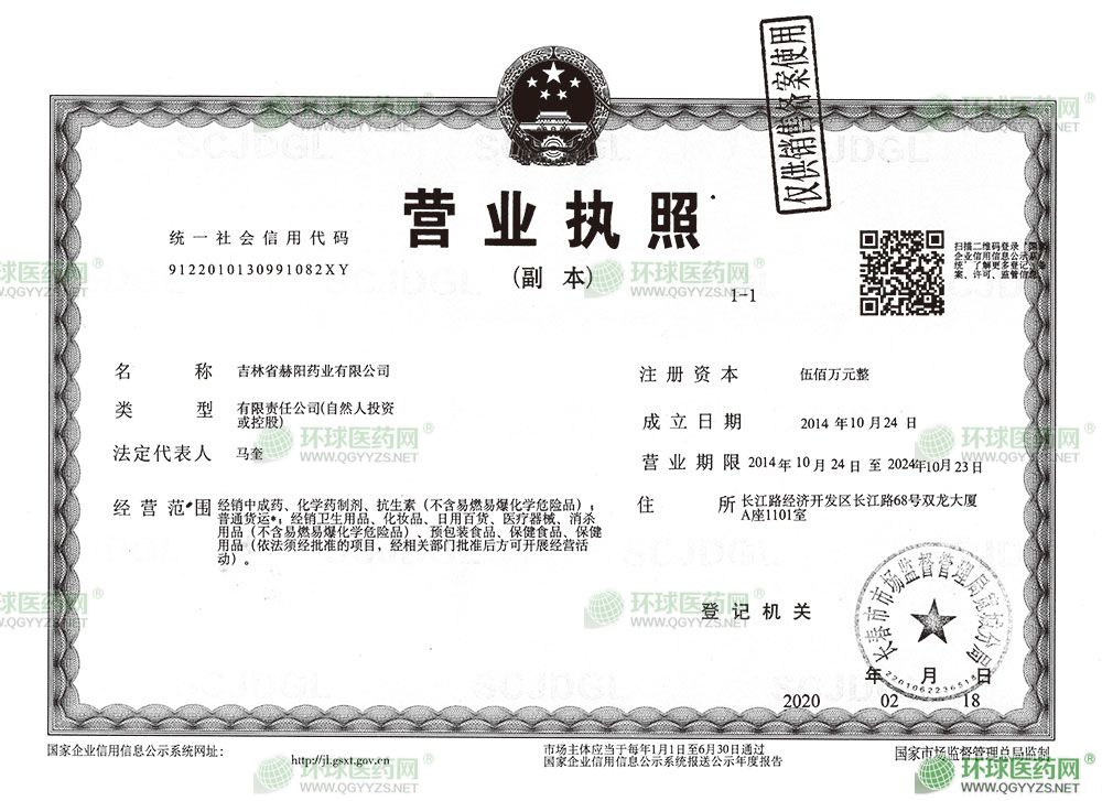 [企業(yè)法人]:吉林省赫陽藥業(yè)有限公司