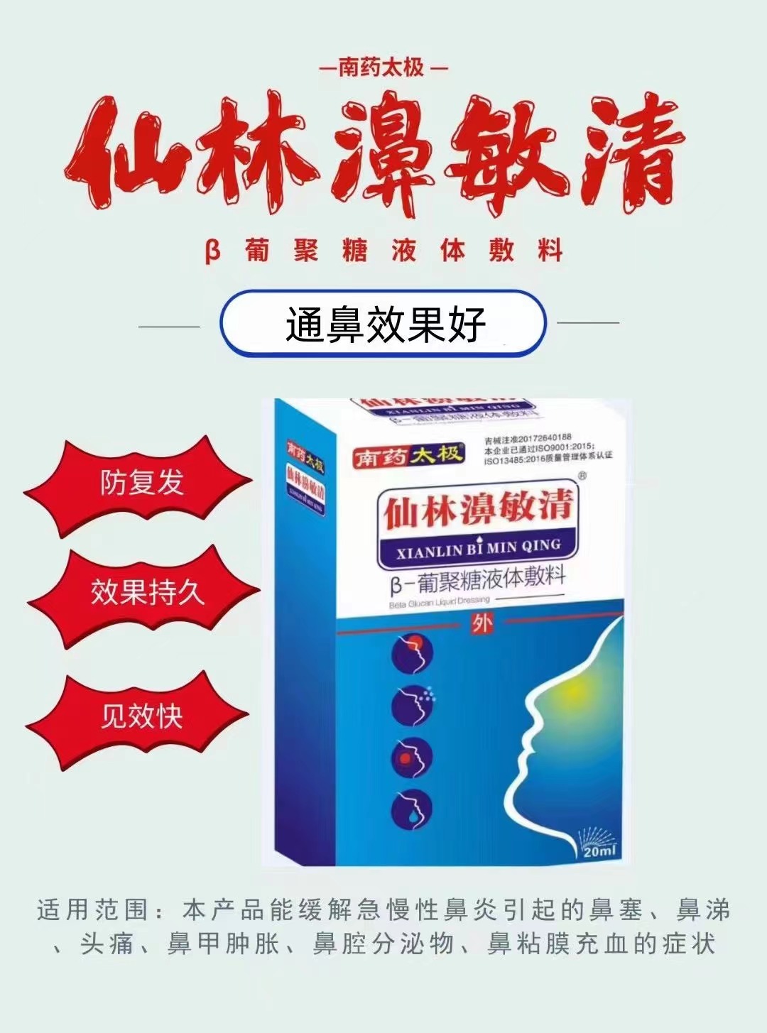 仙林濞敏清β-葡聚糖鼻炎噴劑優(yōu)勢(shì):