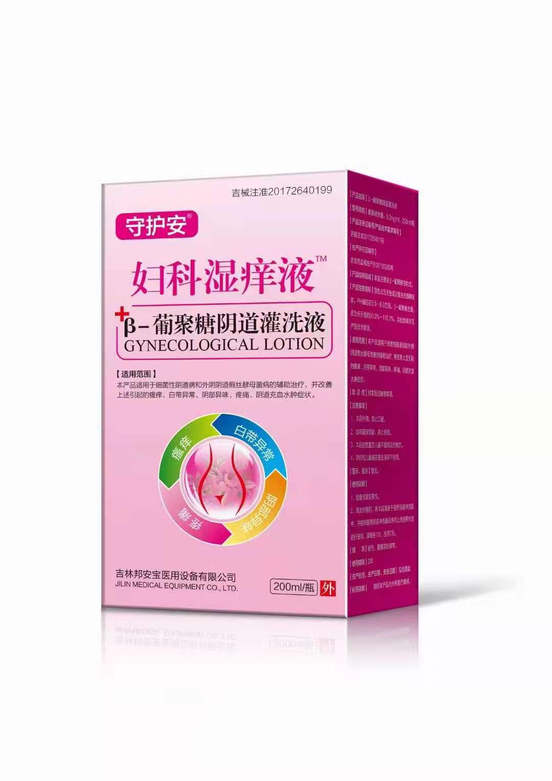 守護安®濕癢液™β-葡聚糖陰道灌洗液是一款適用于細菌性陰道炎、外陰陰道假絲酵母菌病、慢性宮頸糜爛,宮頸炎,病例表現(xiàn),白帶異常,外陰瘙癢,異味等病癥的醫(yī)療級婦科洗液。屬于二類醫(yī)療器械用品,其作用機理是葡聚糖食品級酵母菌提。ㄔ袐D在指導下用藥):葡聚糖是三重超微螺旋結構可靶向識別殺死感染細菌宿主細胞核。