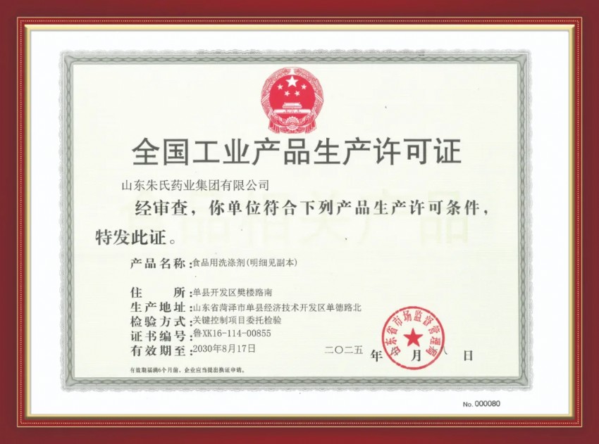 喜訊!山東山東皇圣堂藥業(yè)科技有限公司集團(tuán)獲食品用洗滌劑生產(chǎn)許可證!