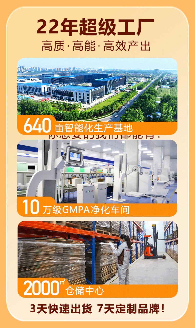 量產(chǎn)階段:38條全自動(dòng)生產(chǎn)線+智能物流系統(tǒng)聯(lián)動(dòng),7天極速出貨。其42萬㎡智能化生產(chǎn)基地劃分外用貼劑、功能性食品、醫(yī)用耗材等專屬生產(chǎn)區(qū)域,單類產(chǎn)品日產(chǎn)能達(dá)300萬件,即便面對(duì)爆單潮也能從容承接。