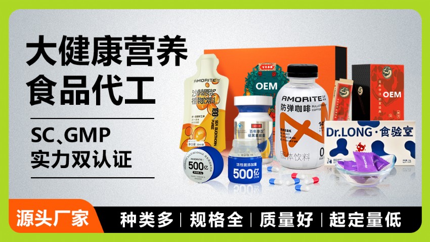 聯(lián)合開發(fā)專利配方,提供VI視覺設計與市場推廣策略,例如為某運動品牌設計“快速吸收+低糖低脂”蛋白補充劑,采用便攜式小包裝適配健身場景。