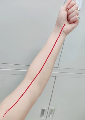 手臂中間和內(nèi)側(cè)位置分別是手厥陰心包經(jīng)和手少陰心經(jīng)循行的位置,拍打這兩條經(jīng)脈可以養(yǎng)心安神。