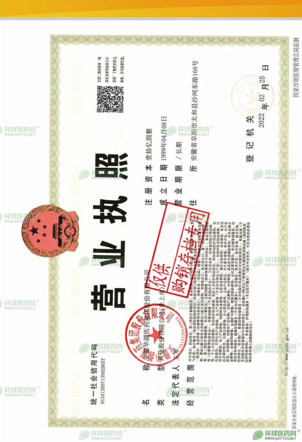[企業(yè)法人]:華源醫(yī)藥股份有限公司