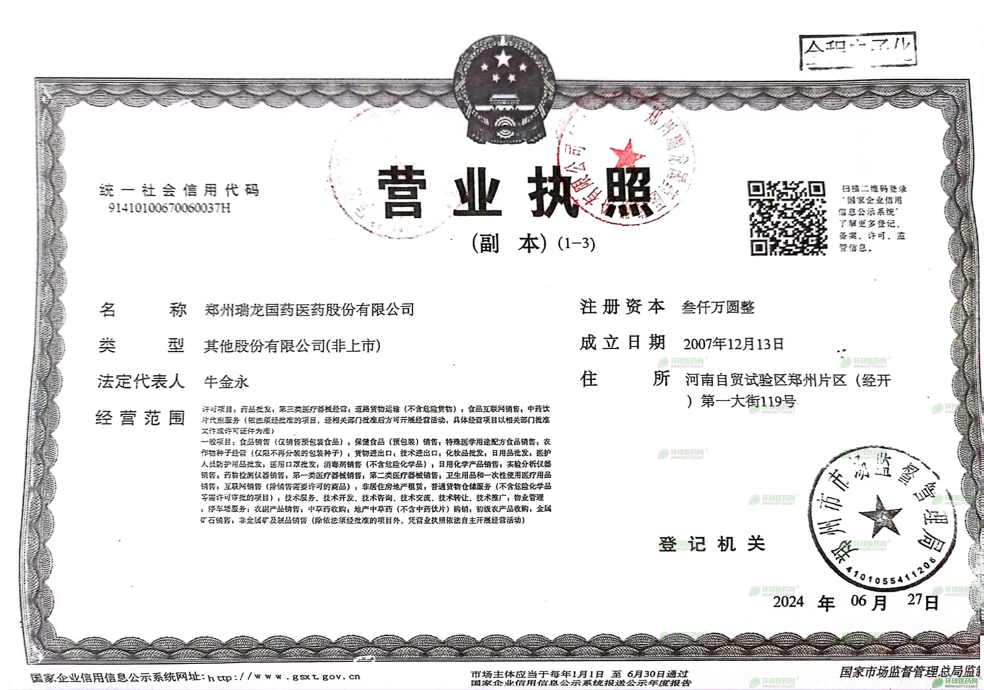 [企業(yè)法人]:鄭州瑞龍國(guó)藥醫(yī)藥股份有限公司