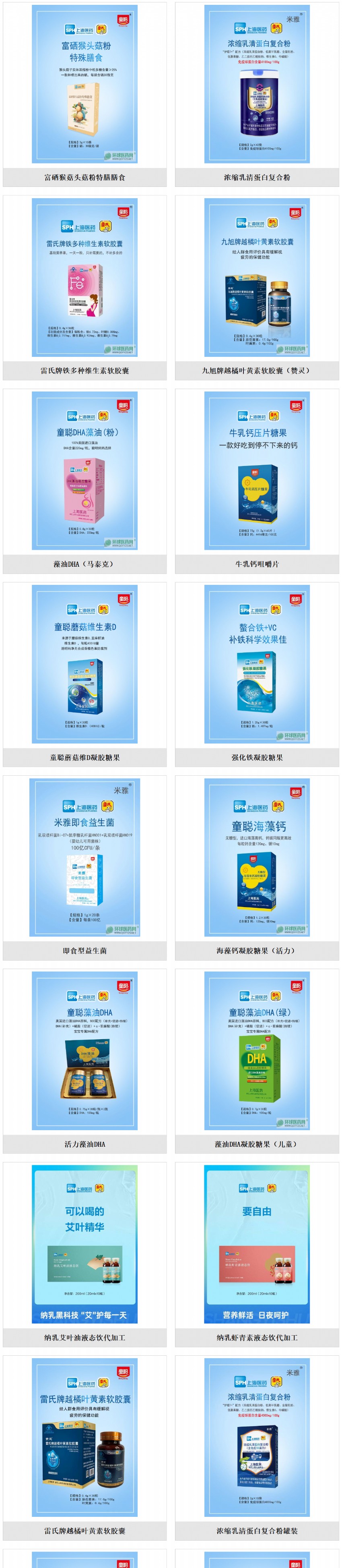 公司研發(fā)出九旭牌越橘葉黃素軟膠囊、雷氏牌鐵多種維生素軟膠囊等保健食品、米雅即食型益生菌、富硒猴頭菇粉、濃縮乳清蛋白復(fù)合粉、童聰藻油DHA凝膠糖果等營養(yǎng)食品以及納米乳劑專利產(chǎn)品納乳DHA、納乳羅伊氏乳桿菌、納乳蝦青素等產(chǎn)品。