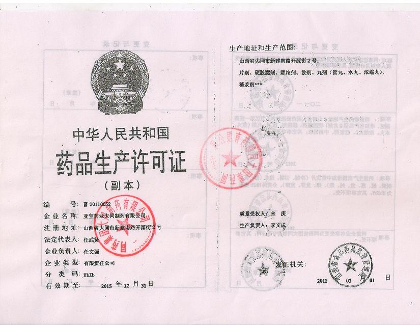 生產(chǎn)范圍: 大同開發(fā)區(qū)第一醫(yī)藥工業(yè)園區(qū)