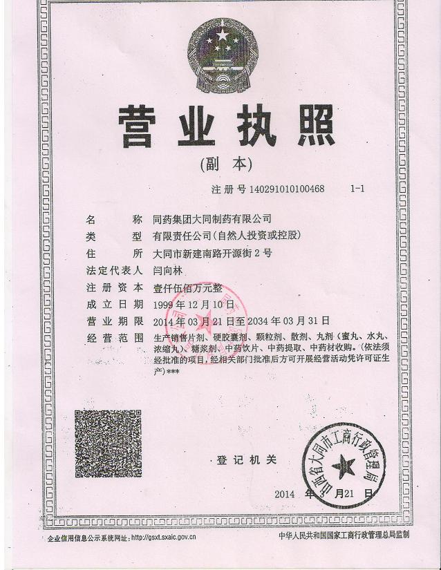 同藥集團有限公司坐落于山西省大同市,集團于2012年入住大同市醫(yī)藥工業(yè)園區(qū),占地面積約25萬平方米,集團投資5.6億元,建設(shè)了具有國際水準(zhǔn)的、完全符合國家新版GMP標(biāo)準(zhǔn)的現(xiàn)代化生產(chǎn)園區(qū),為打造成為國內(nèi)先進的中藥、化藥,生物藥綜合性基地奠定了堅實的基礎(chǔ)。