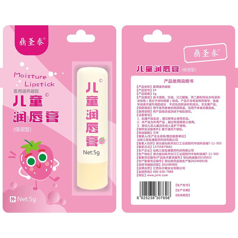 - 兒童潤(rùn)唇膏醫(yī)用退熱凝膠 批準(zhǔn)文號(hào): 鄂仙桃械備20230021規(guī) 格: 5g/支