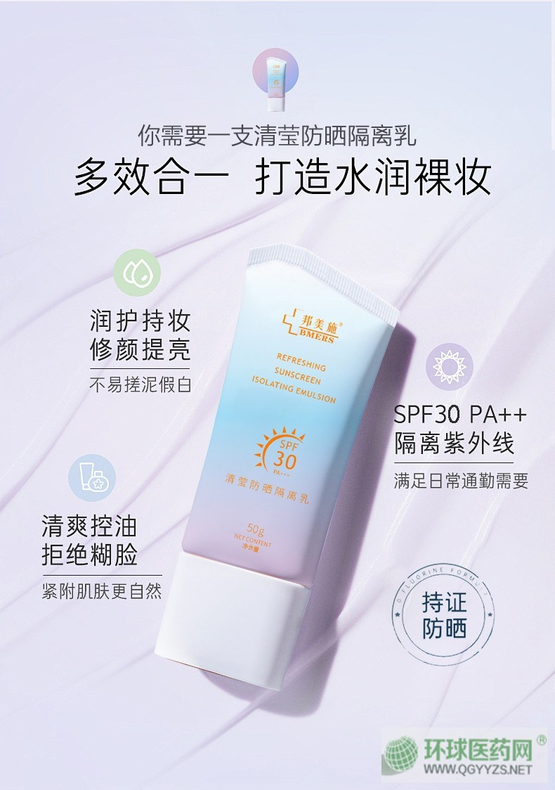 產(chǎn)品用途:有效阻擋紫外線,防曬呵護(hù),令曬后肌膚保持自然光澤狀態(tài)