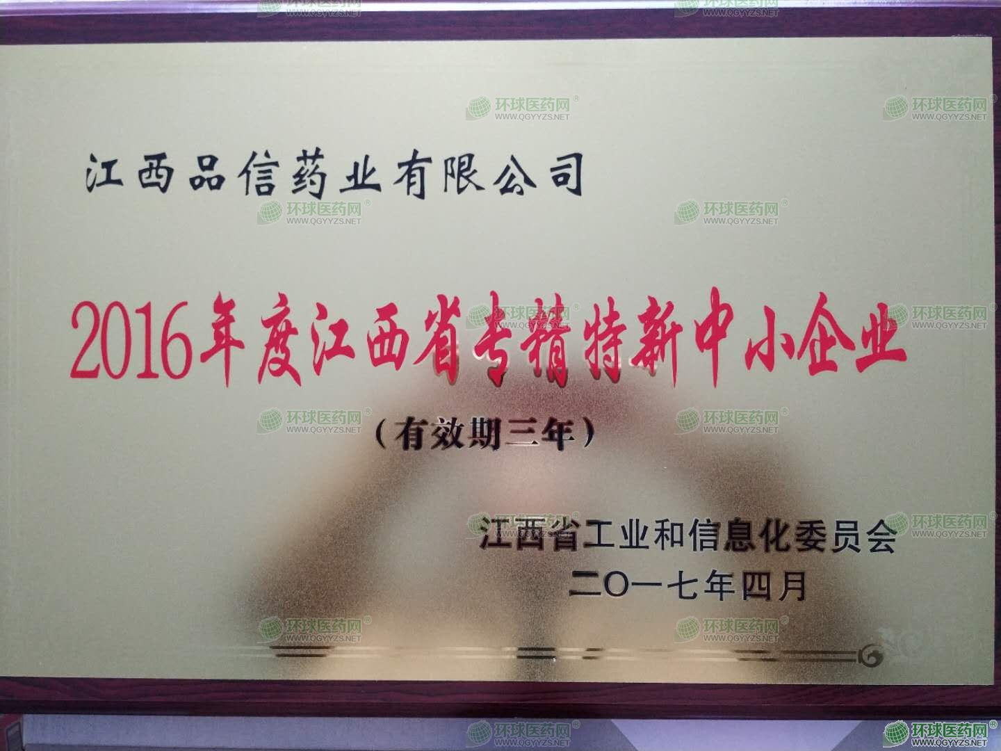 江西品信藥業(yè)有限公司創(chuàng)建于1969年,2003年由原新余市制藥廠退城進(jìn)園改制而成,位于新余高新技術(shù)產(chǎn)業(yè)開發(fā)區(qū)東興路,占地面積110畝,是一家從事中、西藥品生產(chǎn)的高新技術(shù)企業(yè)。2012年9月公司正式更名為“江西品信藥業(yè)有限公司”。2014年10月通過新版GMP認(rèn)證。2014年12月“品信”牌注冊(cè)商標(biāo)榮獲江西省著名商標(biāo)稱號(hào)。