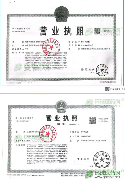 成都神鶴藥業(yè)有限責(zé)任公司座落在四川省成都市,風(fēng)景秀美,人稱天然氧吧的蒲江工業(yè)園區(qū)。公司占地面積26700平方米,建筑面積26000平方米,是以中藥制劑和衛(wèi)生消毒洗液為主的高科技現(xiàn)代化的中藥生產(chǎn)企業(yè)、國家GMP認證企業(yè)、高新技術(shù)企業(yè)。生產(chǎn)認證的劑型為:硬膠囊劑、片劑、顆粒劑及衛(wèi)生行政部門許可的消毒劑(洗液)。公司旗下有成都新希臣藥業(yè)有限責(zé)任公司(省政府小巨人企業(yè)、高新技術(shù)企業(yè))、四川科倫醫(yī)貿(mào)有限公司蒲江分公司、蒲江縣二十多家康貝大藥房連鎖店及四川神鶴科技開發(fā)公司,是集科、工、貿(mào)一體的民營高科技企業(yè)。