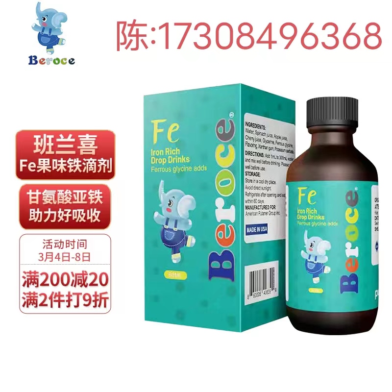 主要成分配料:水、甘氨酸亞鐵、菠菜汁、蘋果汁、櫻桃汁、油、黃原膠、酪蛋白磷酸肽