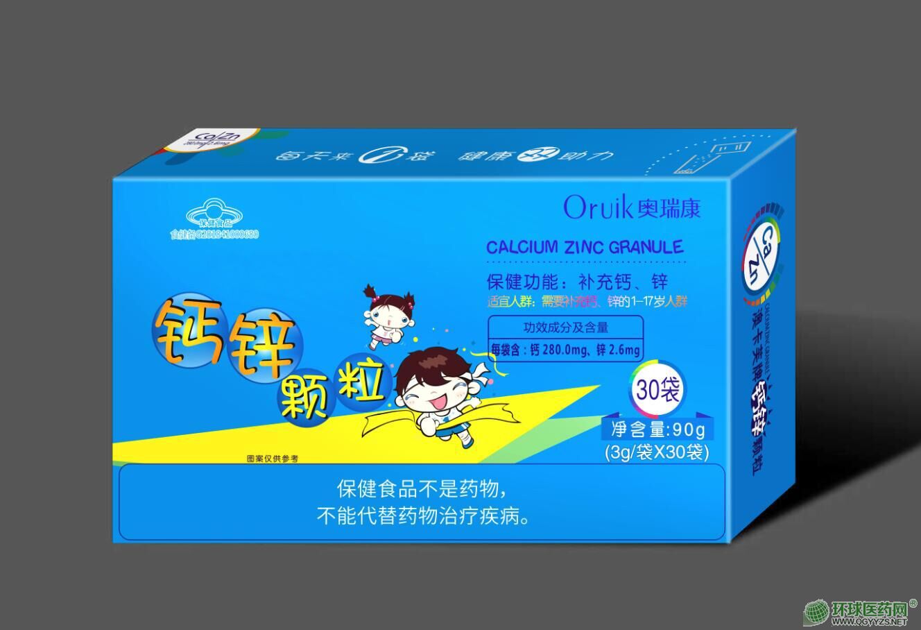 - 奧瑞康鈣鋅顆粒嬰幼兒補鈣補鋅 批準文號: 國食健字G13554877365規(guī) 格: 3克*30袋/盒