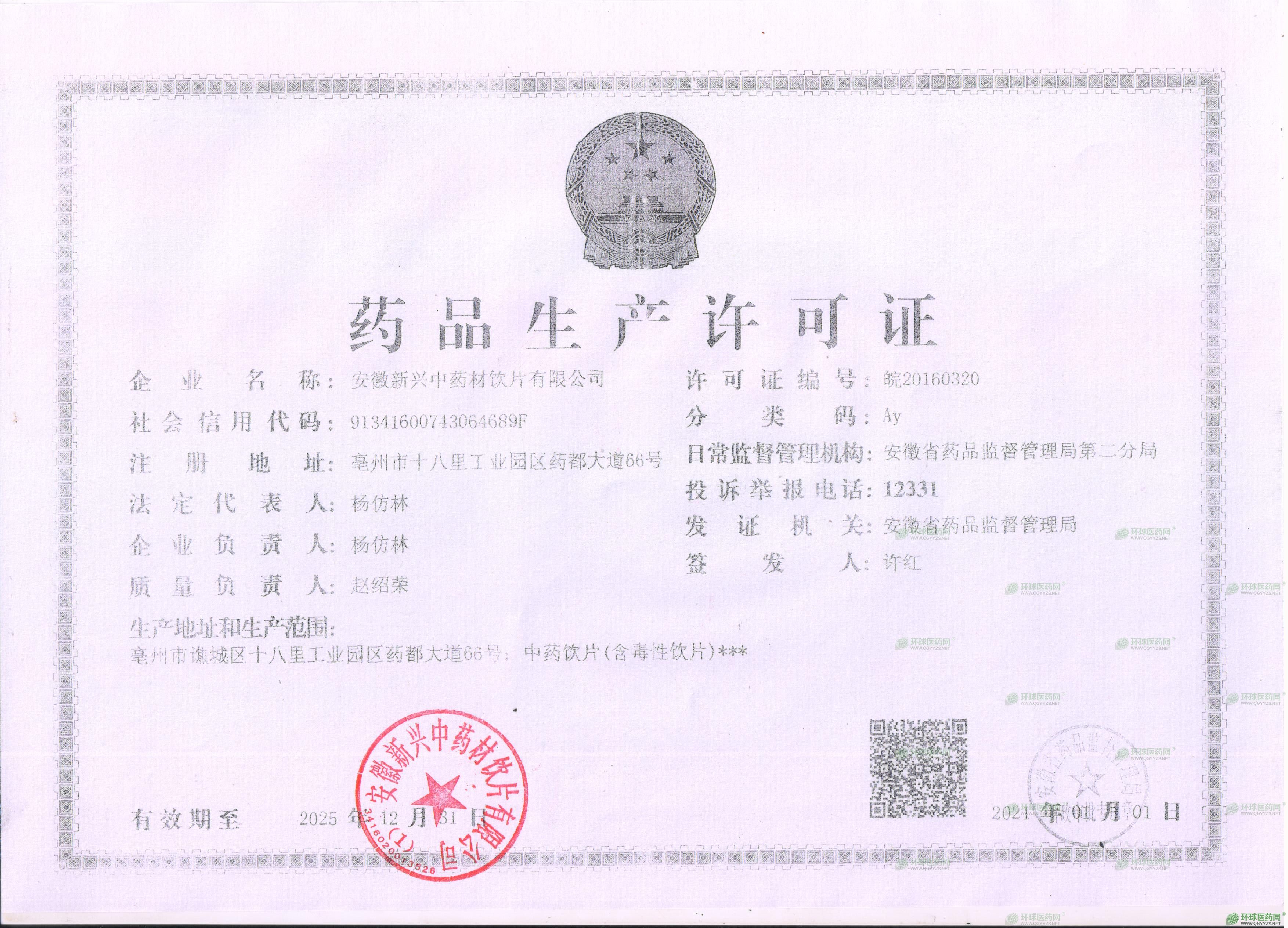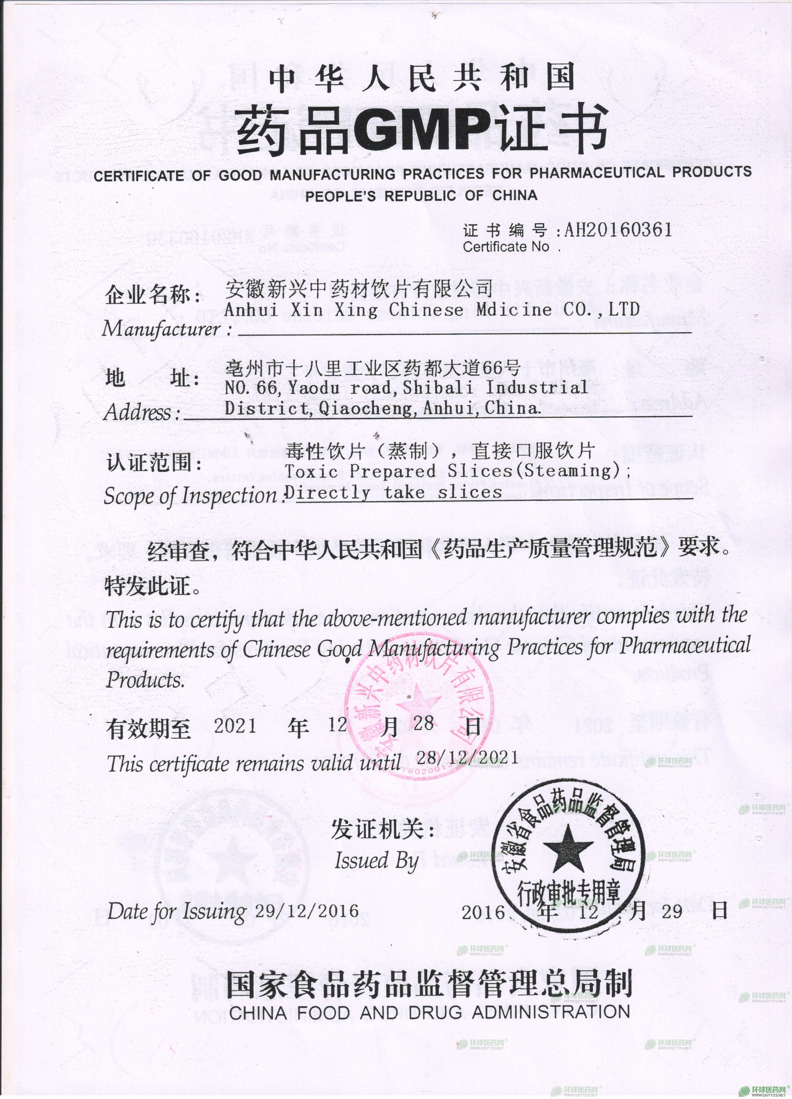 生產(chǎn)范圍: 中藥飲片(含毒性飲片)***
