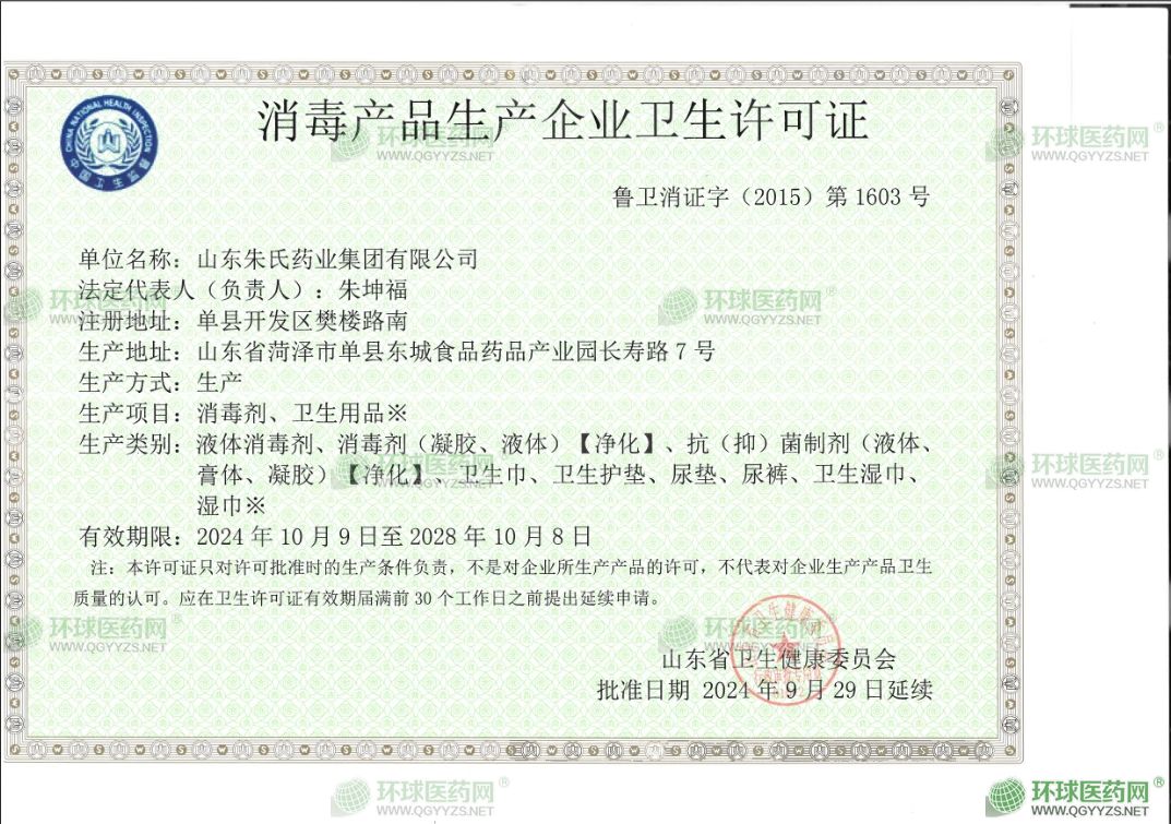 - 消毒產(chǎn)品生產(chǎn)企業(yè)衛(wèi)生許可證