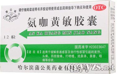- 氨咖黃敏膠囊 批準(zhǔn)文號(hào): 國(guó)藥準(zhǔn)字H23023647規(guī) 格: 每粒含對(duì)乙酰氨基酚250毫克,咖啡因15毫克,馬來(lái)酸氯苯那敏1毫克,人工牛黃10毫克