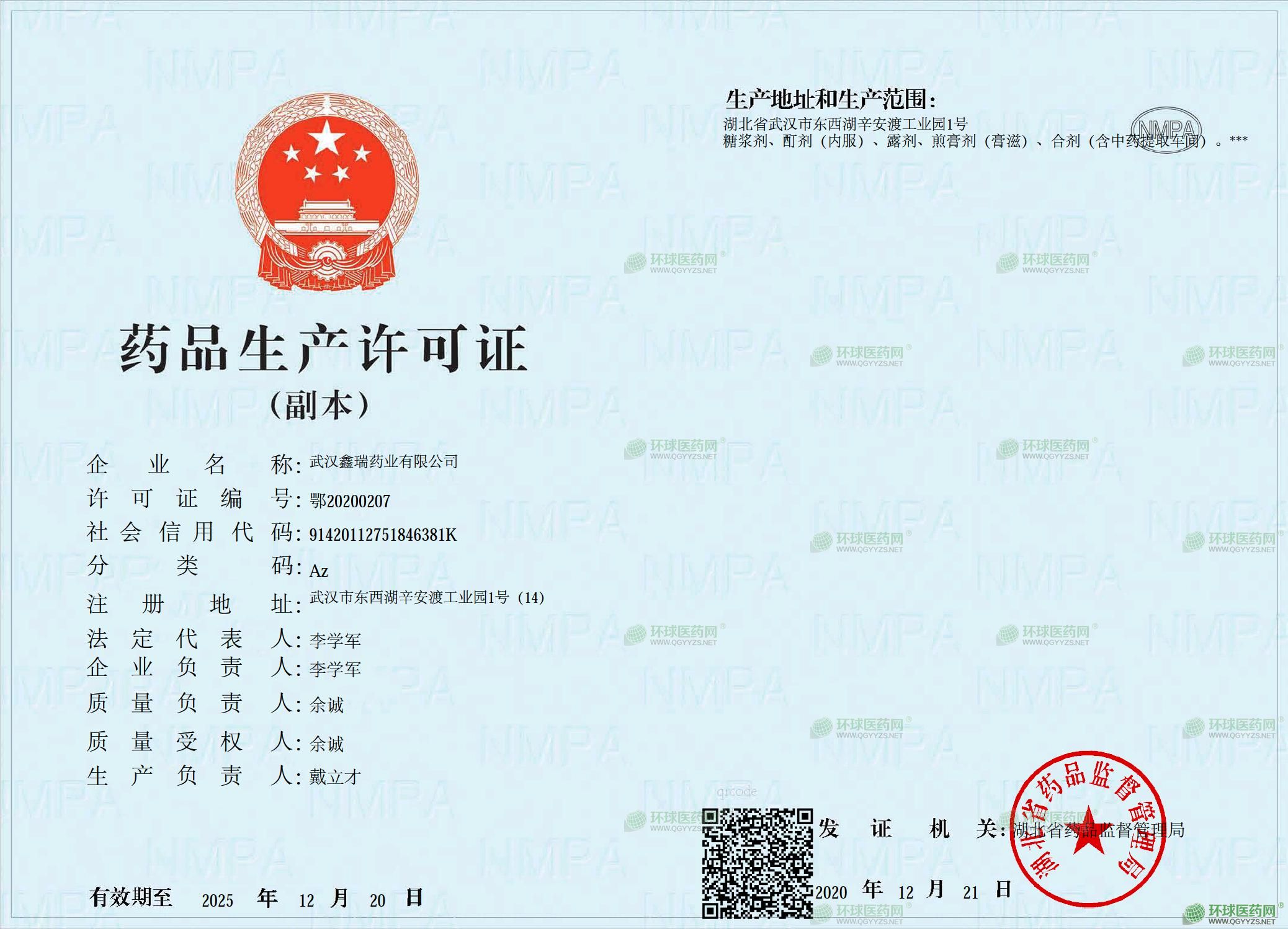 發(fā)證機關(guān): 湖北省藥品監(jiān)督管理局