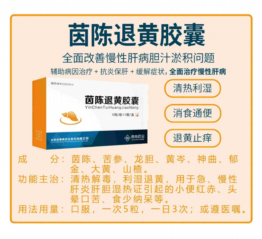另外,茵陳退還膠囊還專門添加了具有止癢、消食等作用的藥味,可以有效緩解黃疸、皮膚瘙癢、消化不良等全身癥狀。