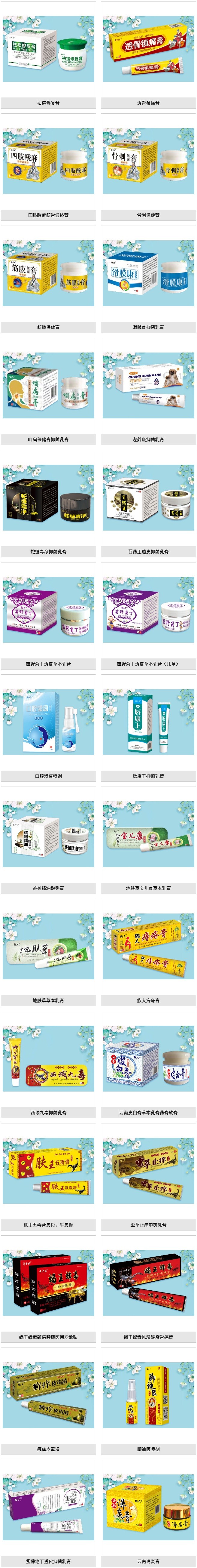 主要成分:野花椒提取液、地膚子提取液、苦參提取液、蛇床子提取液、白蘚皮提取液、薄荷腦、單,雙甘油硬脂酸酯、硬脂酸、白油、白凡士林、醋酸氯己定、純化水等。
