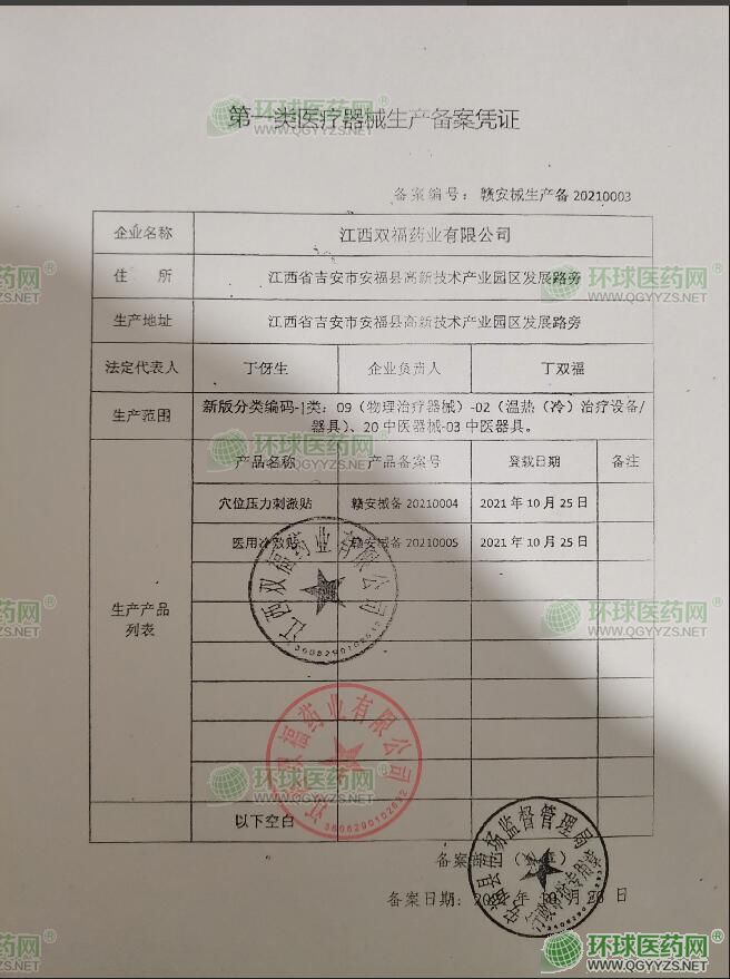 - 第一類醫(yī)療器械生產備案憑證