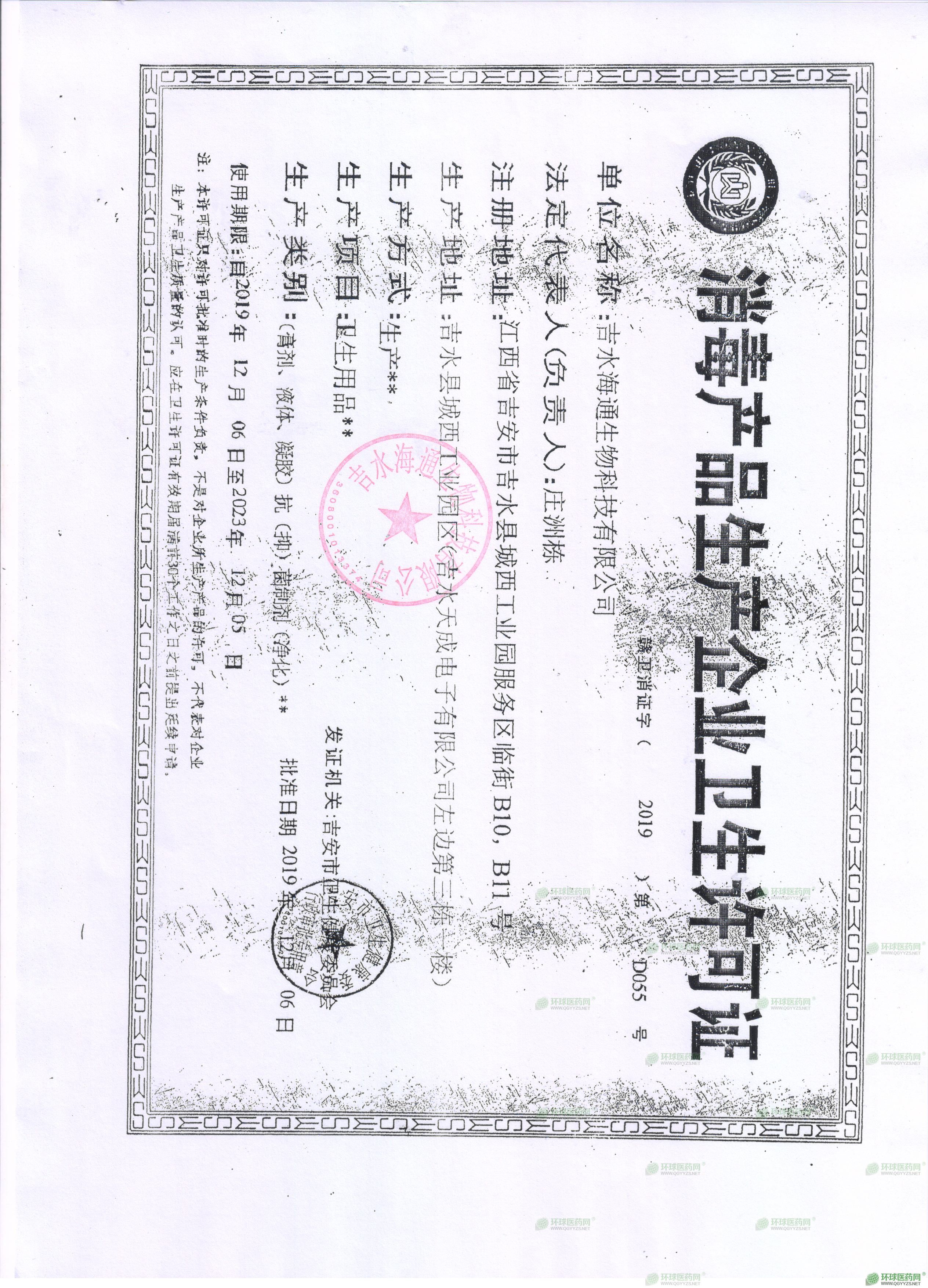 - 消毒產品生產企業(yè)衛(wèi)生許可證