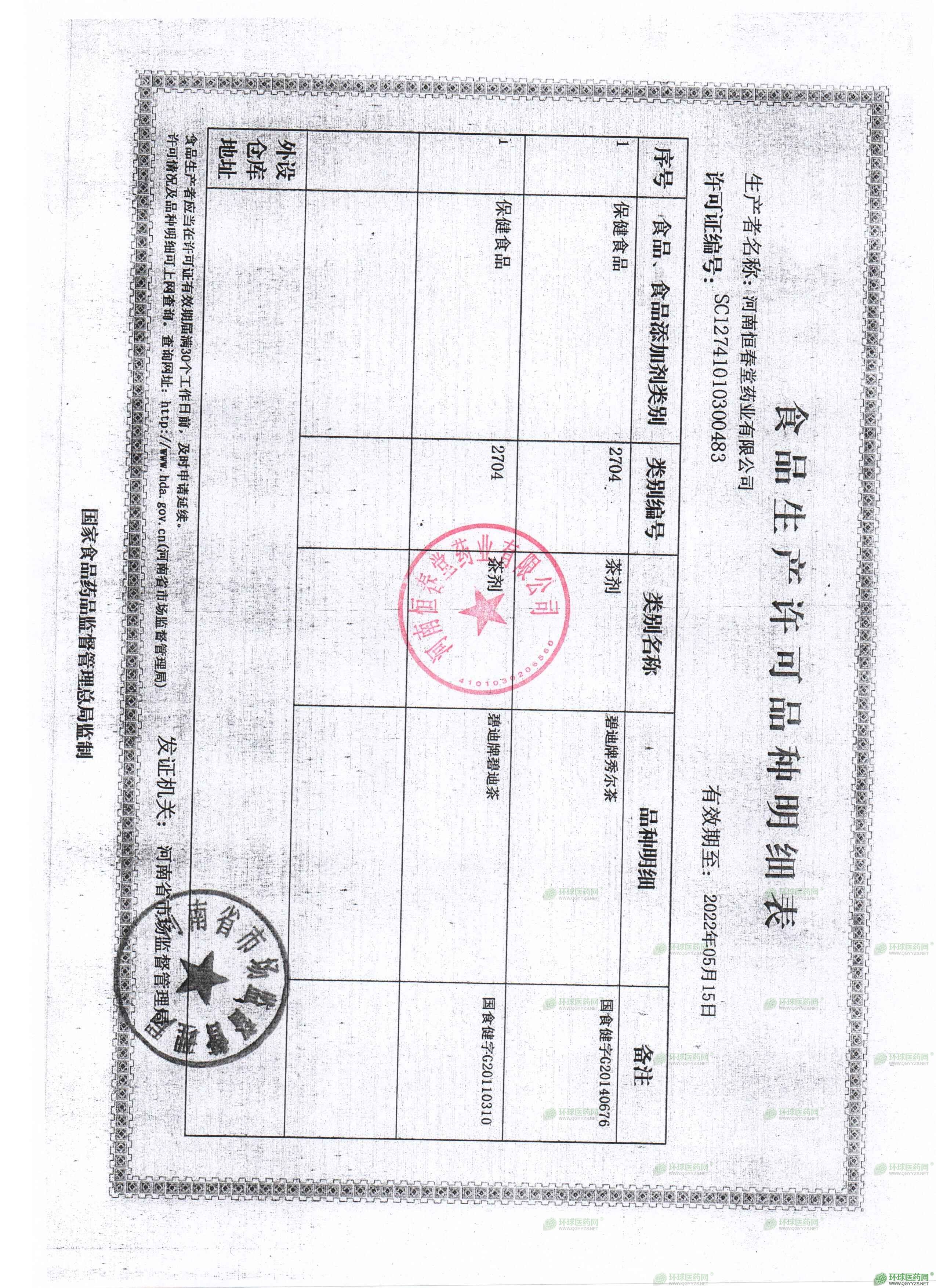 - 保健食品生產(chǎn)許可證