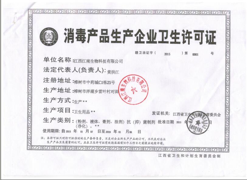 - 消毒產(chǎn)品生產(chǎn)衛(wèi)生許可證